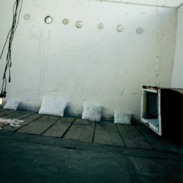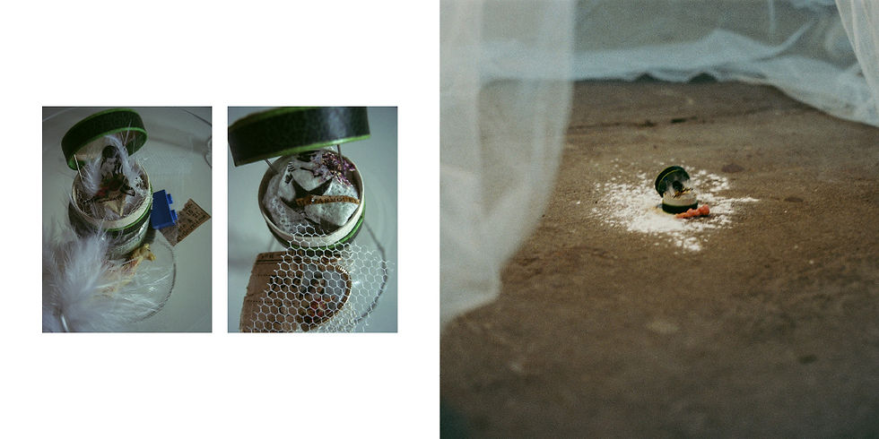 voile de tulle, installation électrique, collages, photographie dans ancienne