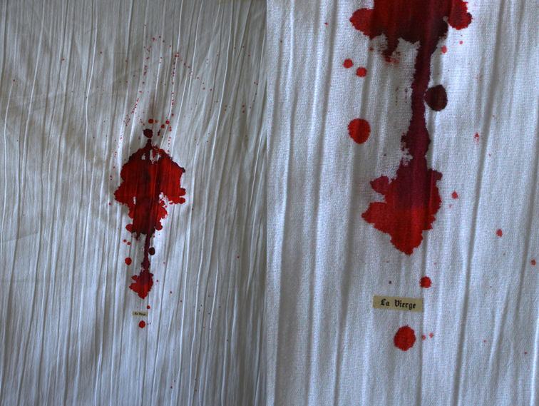 Photographie et textes, «couvertures rituelles» , broderie, collage,installation